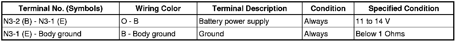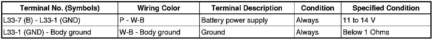 If the result is not as specified, there may be a malfunction on the wire harness side.