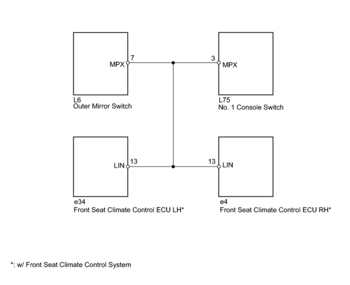 The outer mirror switch monitors the LIN communication bus between the components related to the switches on the driver side seat.