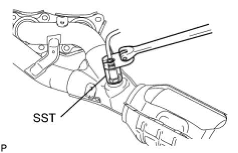 (a) Using SST, remove the air fuel ratio sensor from the exhaust manifold LH.
