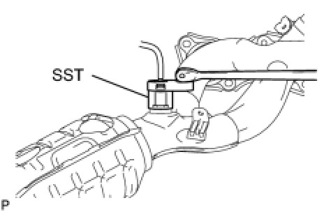 (a) Using SST, remove the air fuel ratio sensor from the exhaust manifold RH.