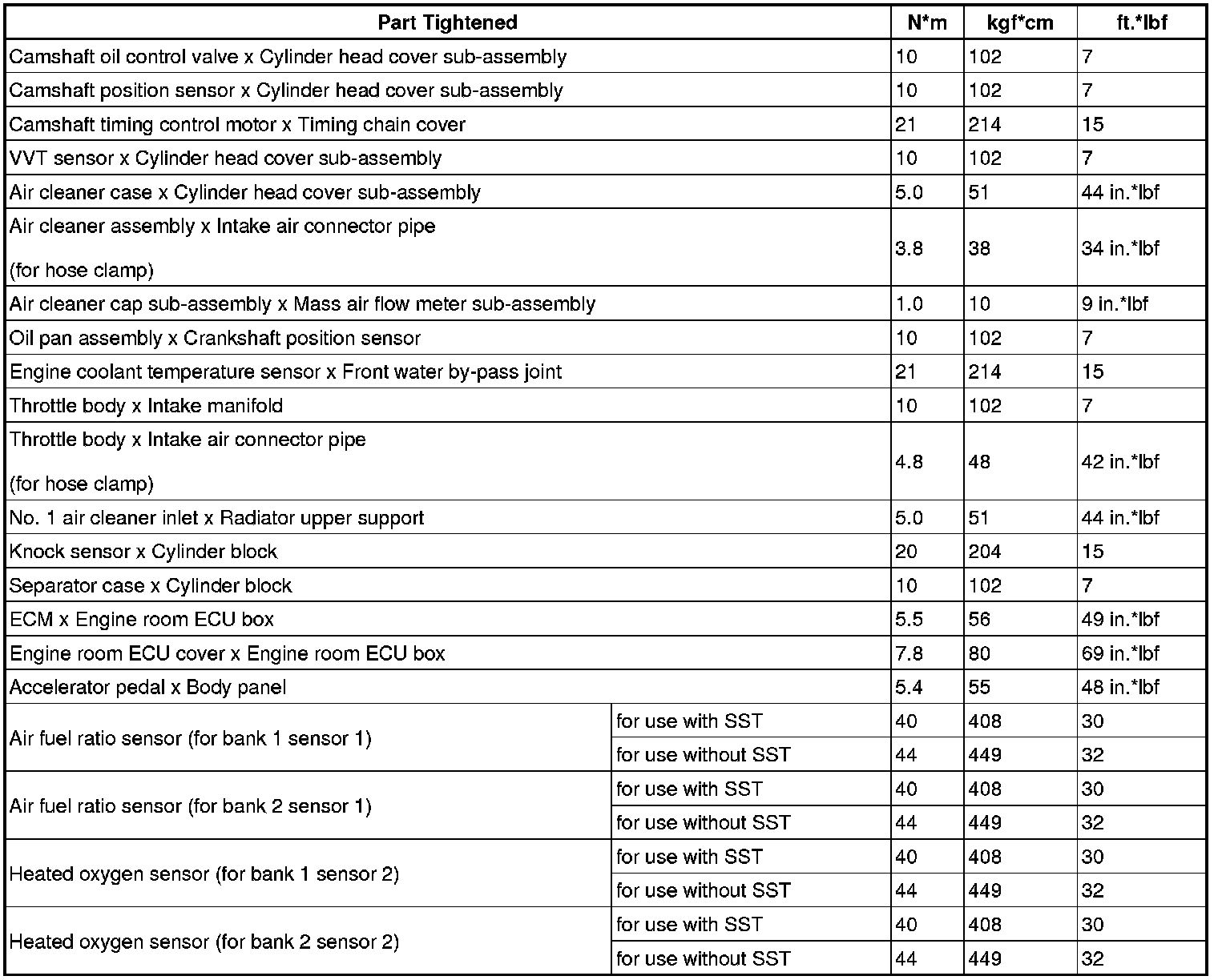 SERVICE SPECIFICATIONS: 1UR-FSE ENGINE CONTROL SYSTEM: TORQUE SPECIFICATIONS
