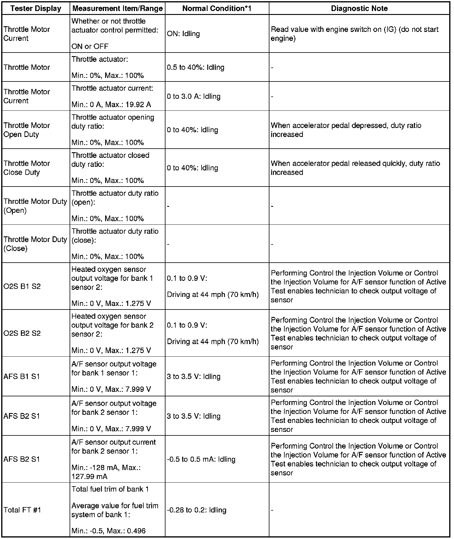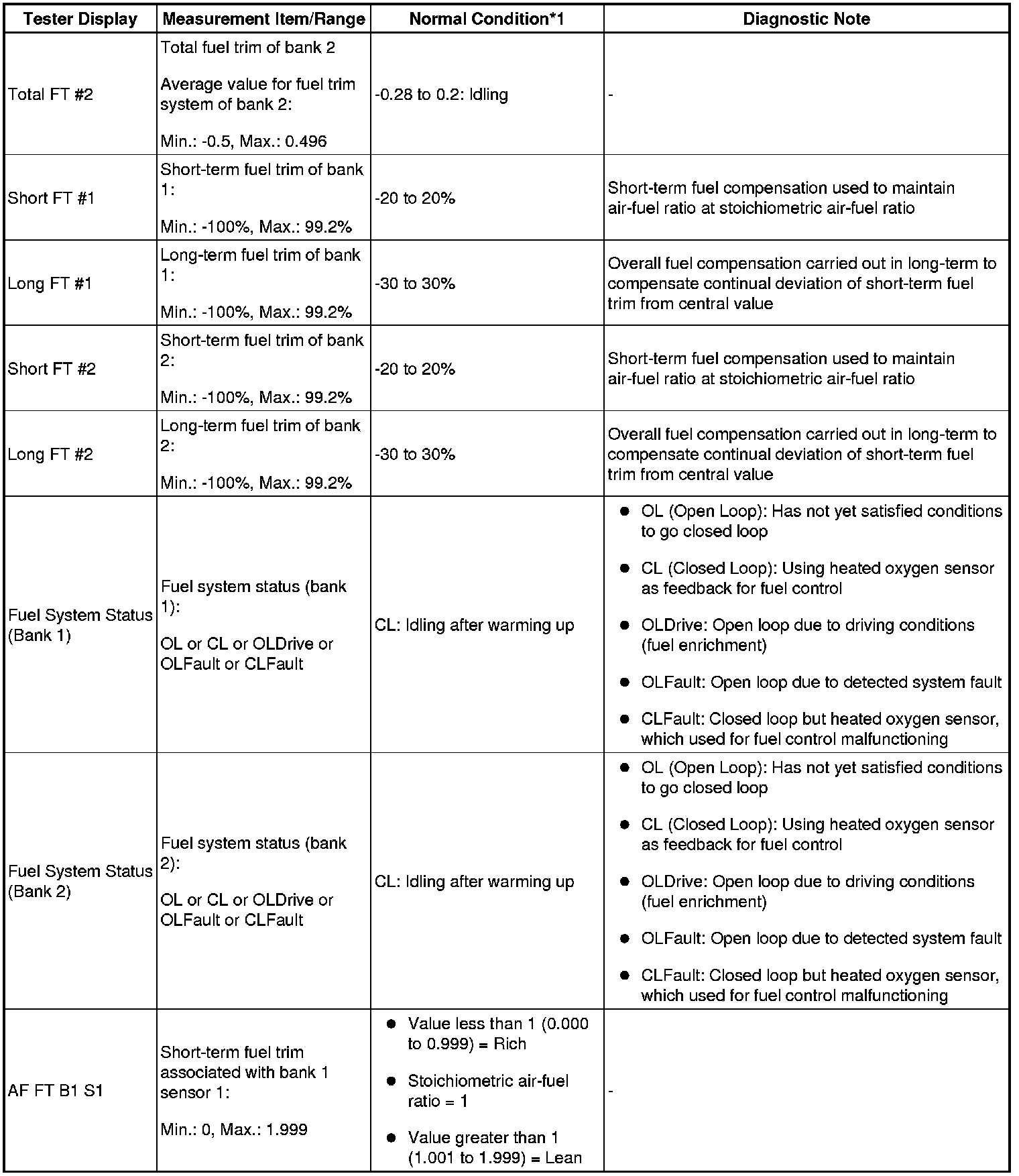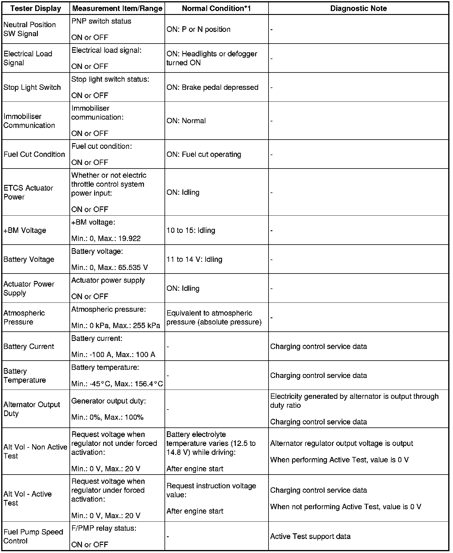 - *1: If no idling conditions are specified, the transmission gear selector lever should be in the N or P position, and the A/C switch and all accessory switches should be OFF.