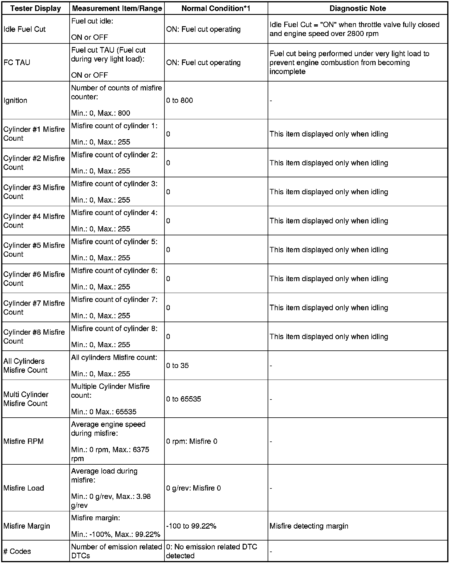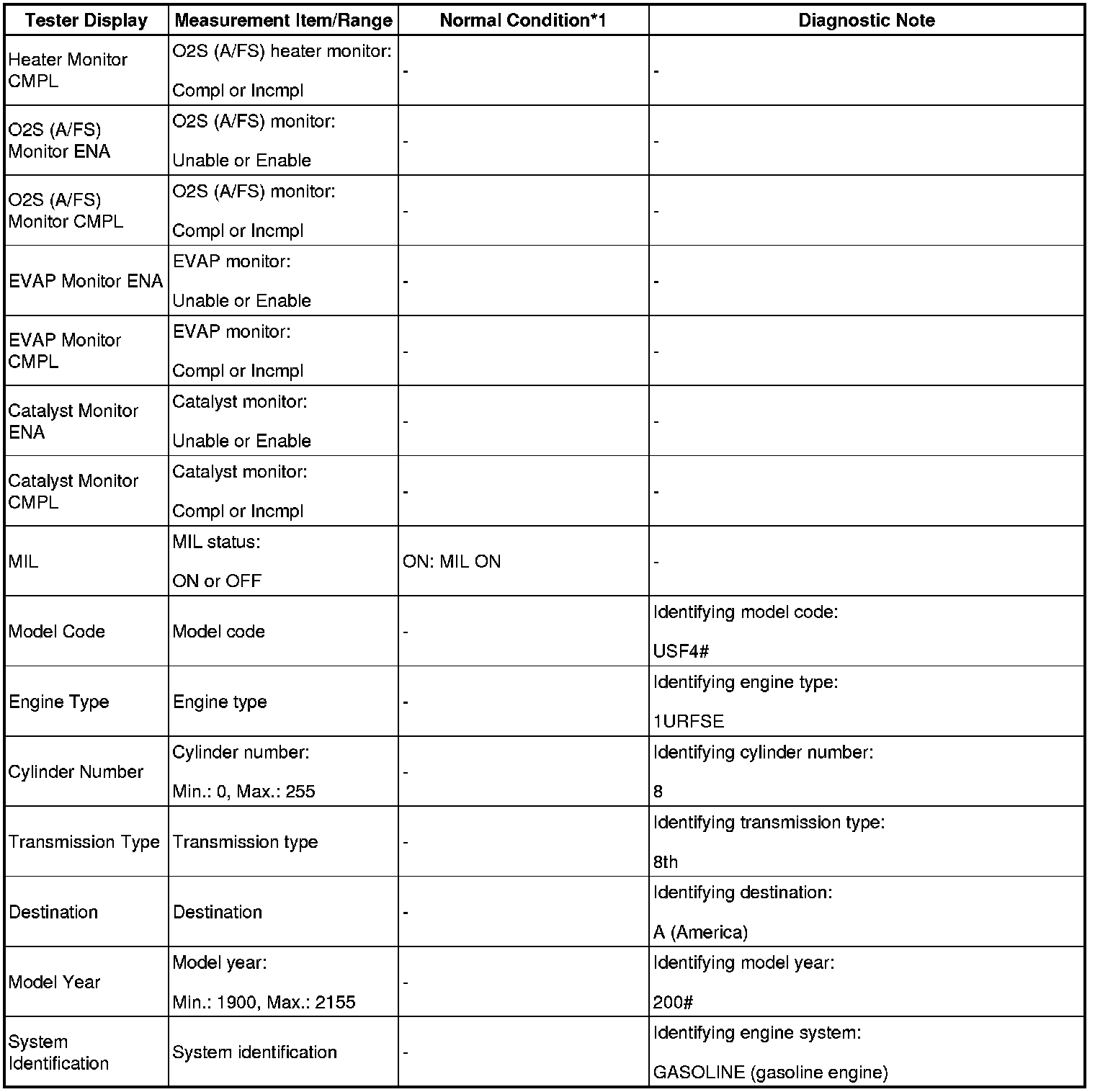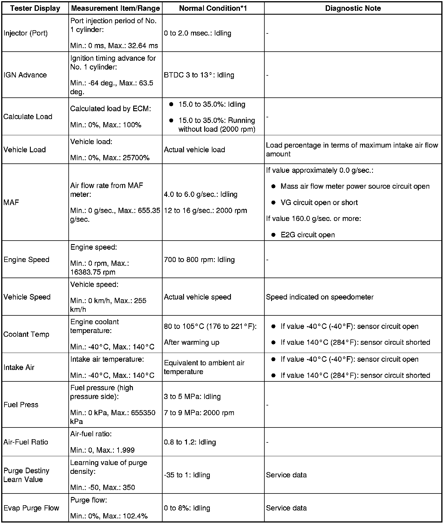 - *1: If no idling conditions are specified, the transmission gear selector lever should be in the N or P position, and the A/C switch and all accessory switches should be OFF.