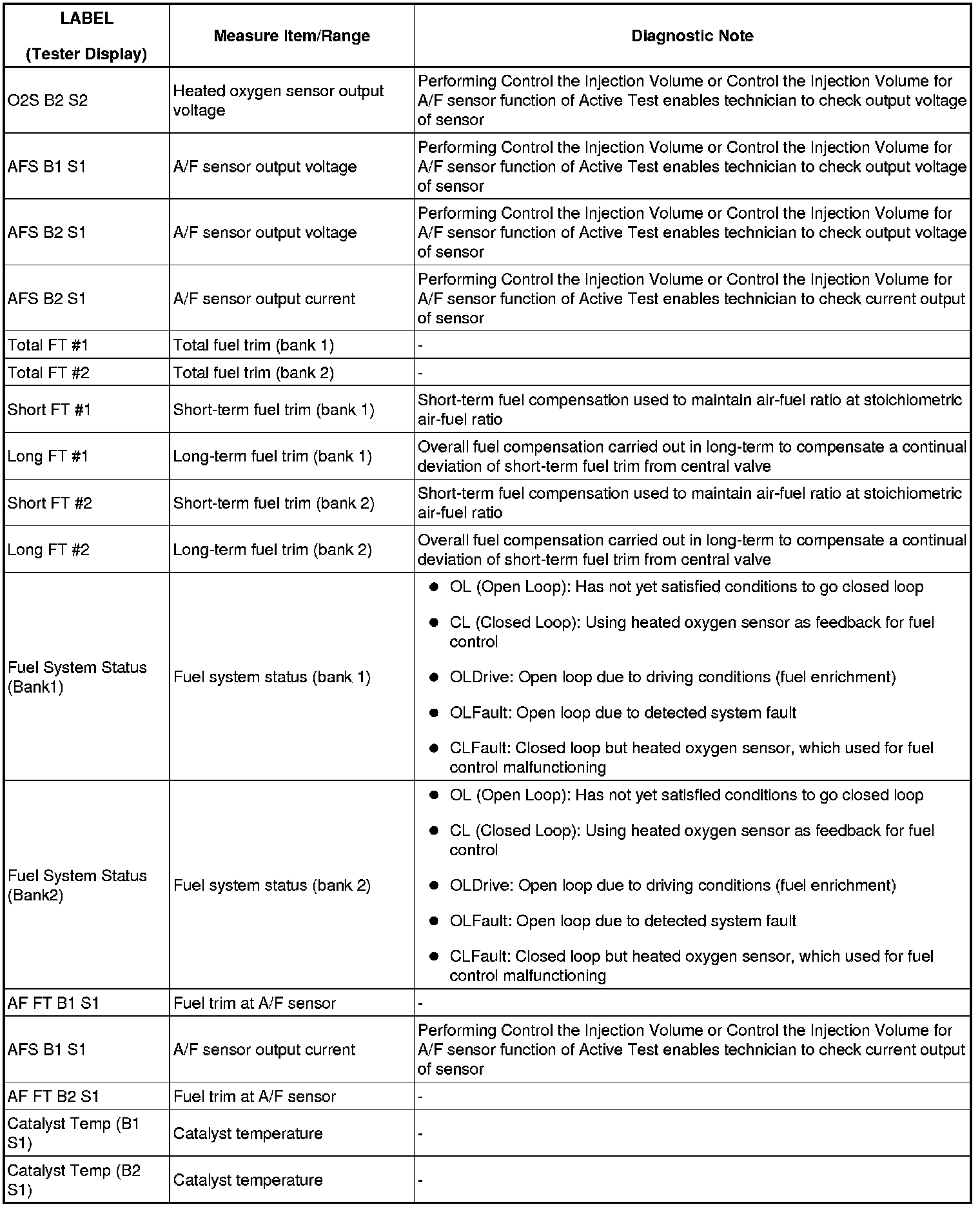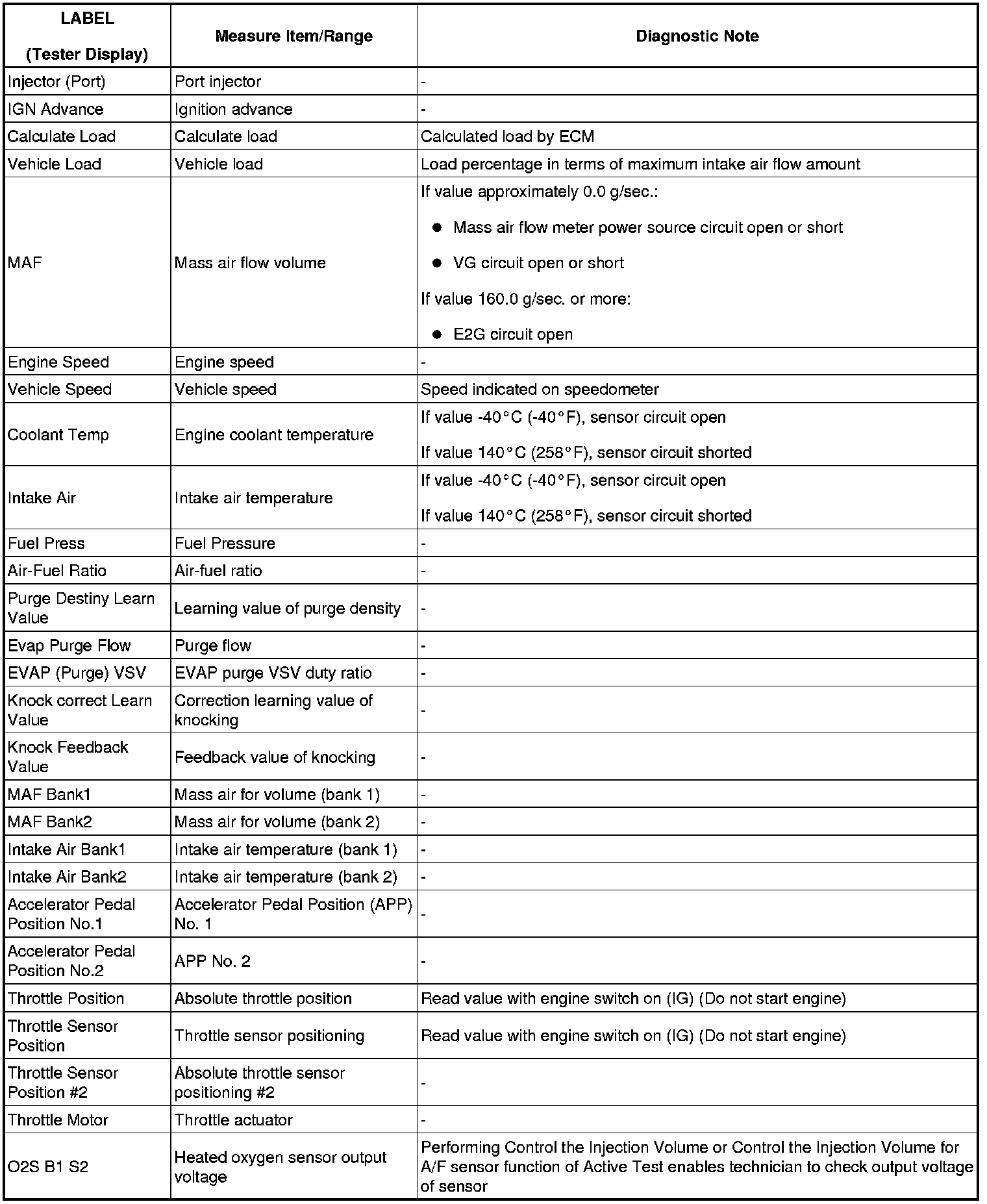 1UR-FSE ENGINE CONTROL SYSTEM: SFI SYSTEM: FREEZE FRAME DATA