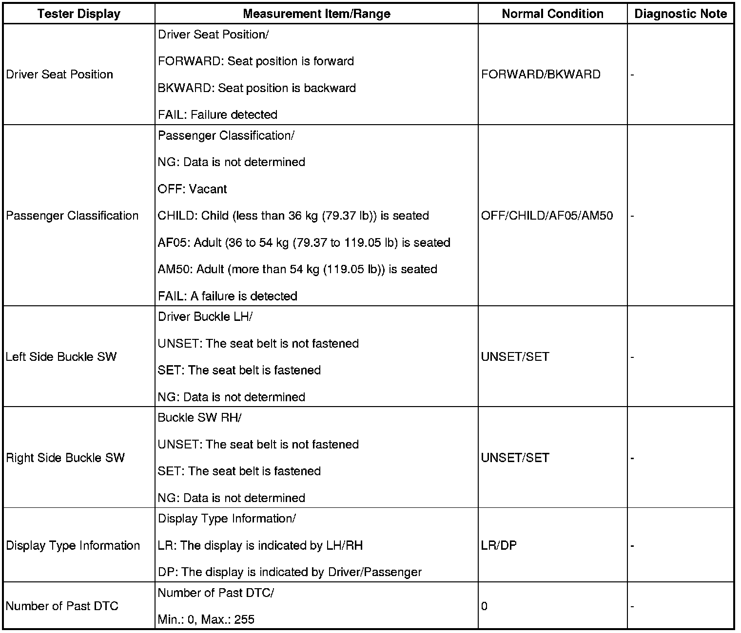 SUPPLEMENTAL RESTRAINT SYSTEM: AIRBAG SYSTEM: DATA LIST / ACTIVE TEST