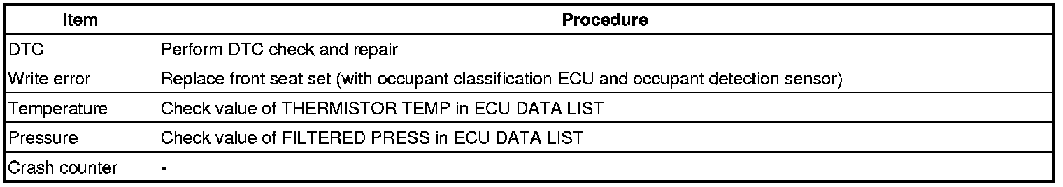 - The front seat set (occupant classification ECU) is replaced.
