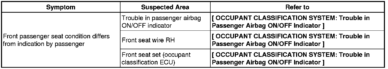 SUPPLEMENTAL RESTRAINT SYSTEM: OCCUPANT CLASSIFICATION SYSTEM: PROBLEM SYMPTOMS TABLE