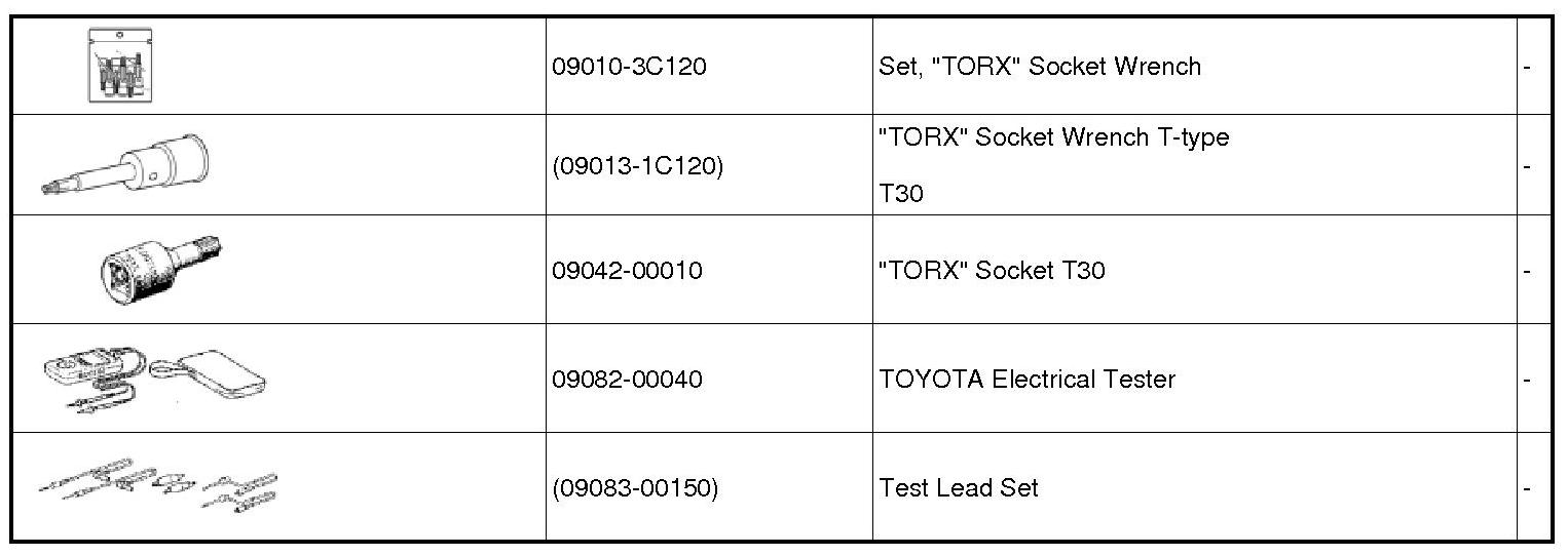 PREPARATION: SUPPLEMENTAL RESTRAINT SYSTEM: RECOMMENDED TOOLS