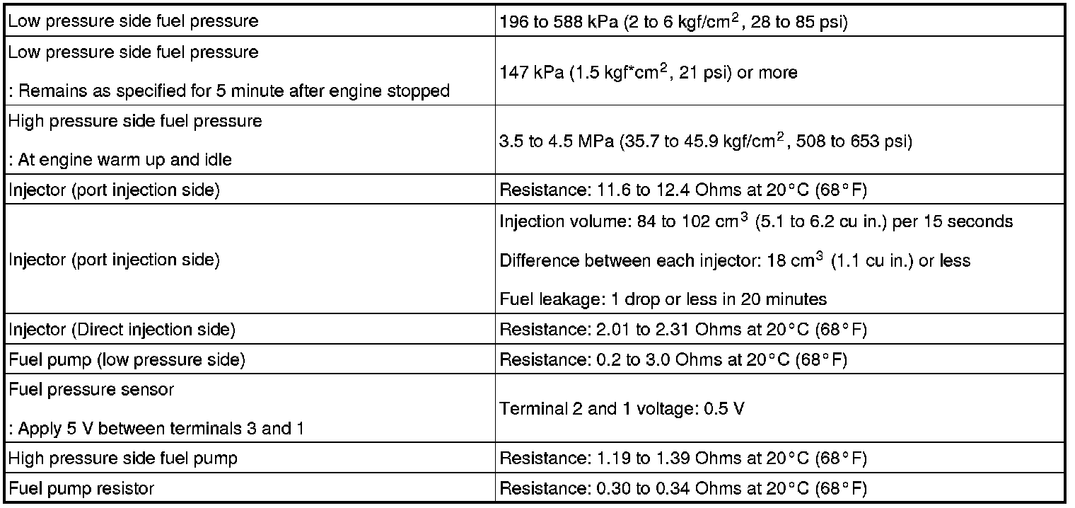 SERVICE SPECIFICATIONS: 1UR-FSE FUEL: SERVICE DATA