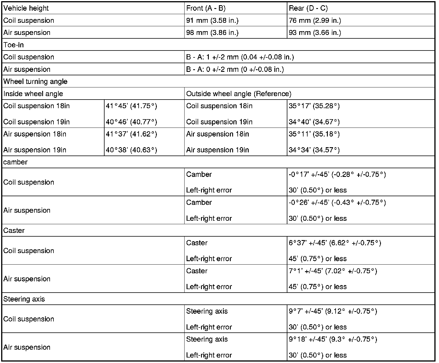 SERVICE SPECIFICATIONS: SUSPENSION: SERVICE DATA