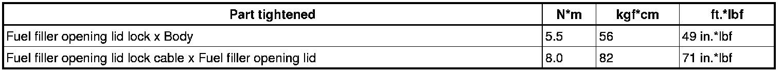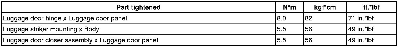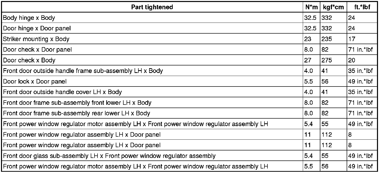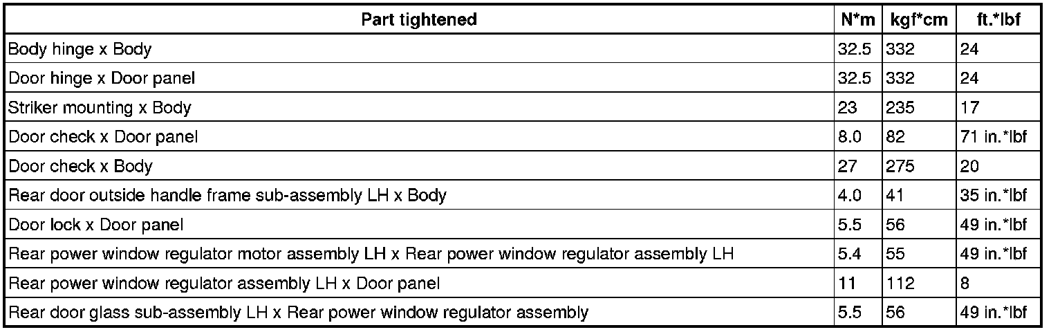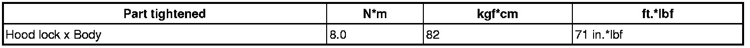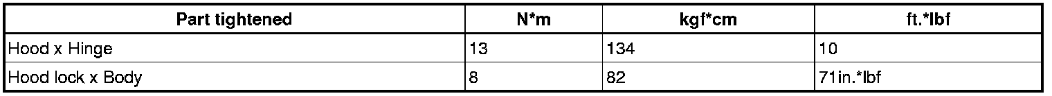 SERVICE SPECIFICATIONS: ENGINE HOOD / DOOR: TORQUE SPECIFICATIONS