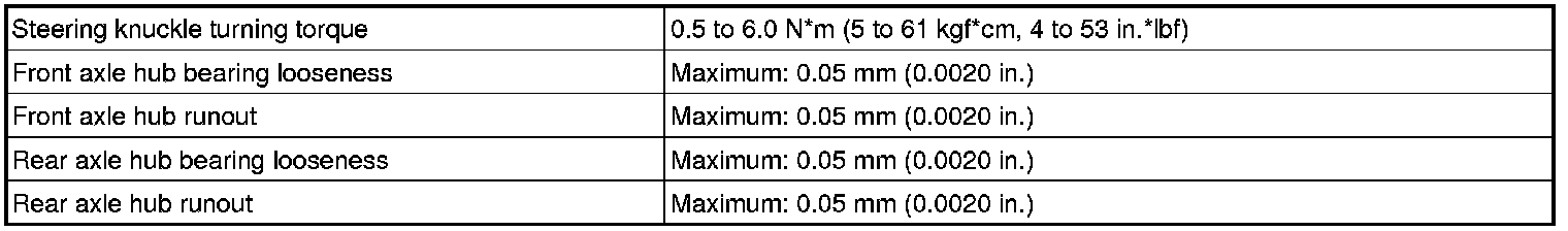 SERVICE SPECIFICATIONS: AXLE: SERVICE DATA