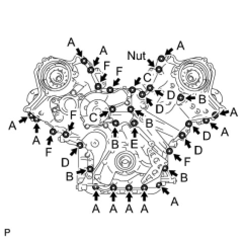 Final pass: Tighten 21 bolts and nut in several steps in sequence 23 Nm (235 kgf-cm, 17 ft-lbf)