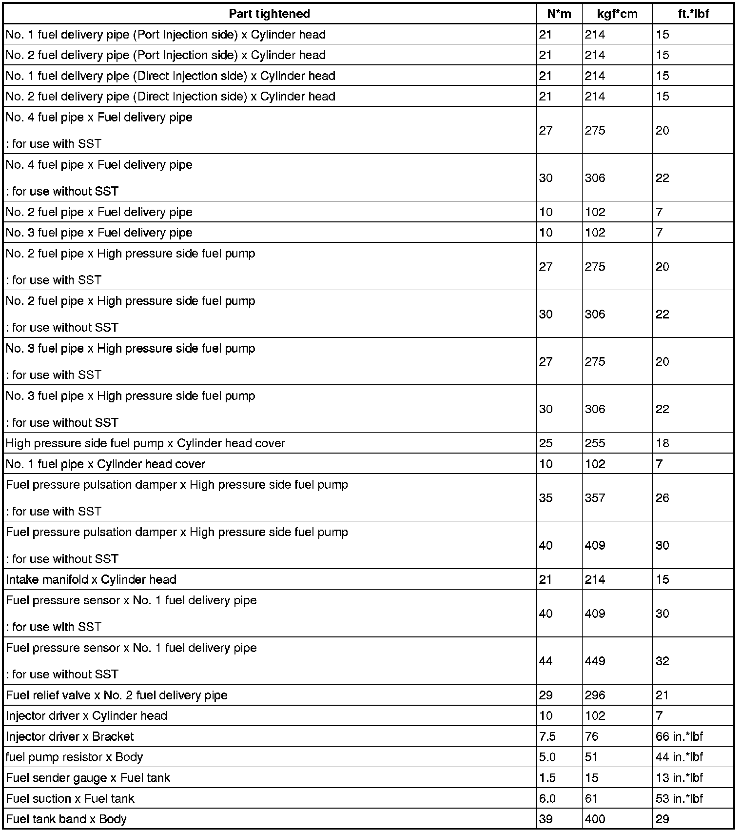 SERVICE SPECIFICATIONS: 1UR-FSE FUEL: TORQUE SPECIFICATIONS