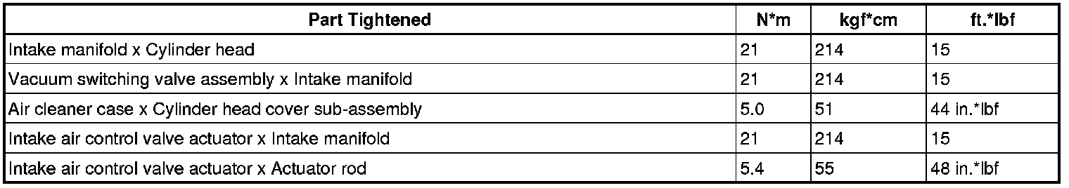SERVICE SPECIFICATIONS: 1UR-FSE INTAKE: TORQUE SPECIFICATIONS