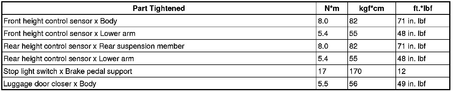 SERVICE SPECIFICATIONS: LIGHTING: TORQUE SPECIFICATIONS