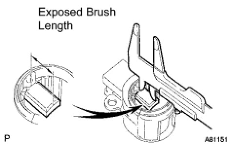If the exposed brush length is less than the minimum, replace the generator brush holder assembly.