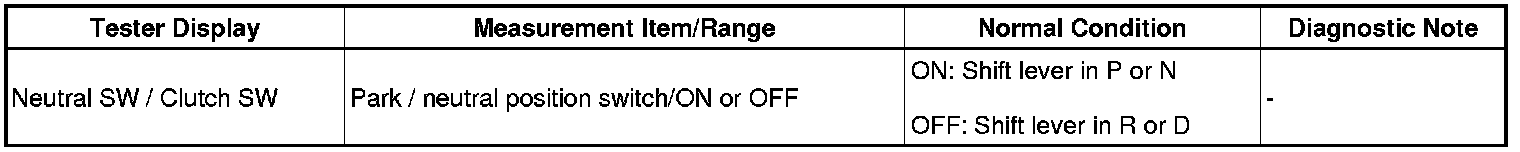 5. READ VALUE USING TECHSTREAM (PARK / NEUTRAL POSITION SWITCH)
