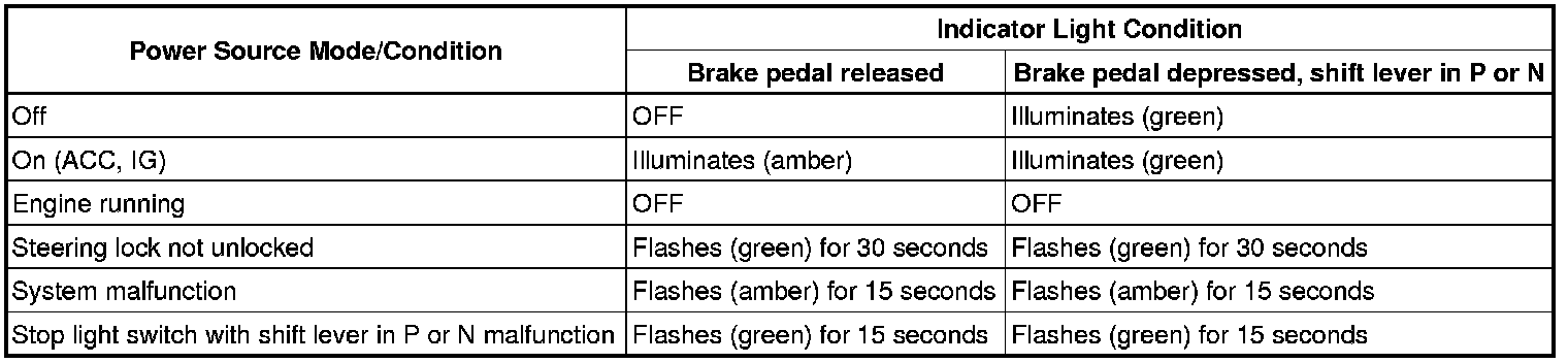 Engine start conditions or system malfunctions can be checked by observing the status of the engine switch indicator light.