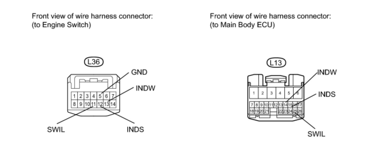 (b) Apply battery voltage between the terminals of the engine switch, and check the illumination condition of the engine switch indicator light.