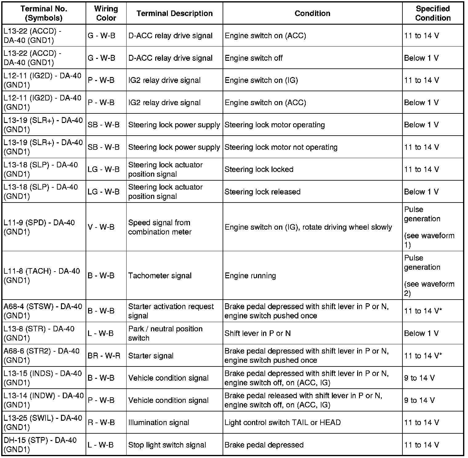 HINT: *: Voltage is output for 0.3 seconds before the engine is started.