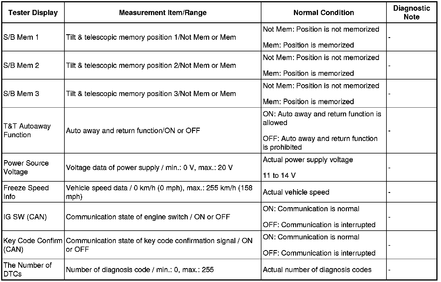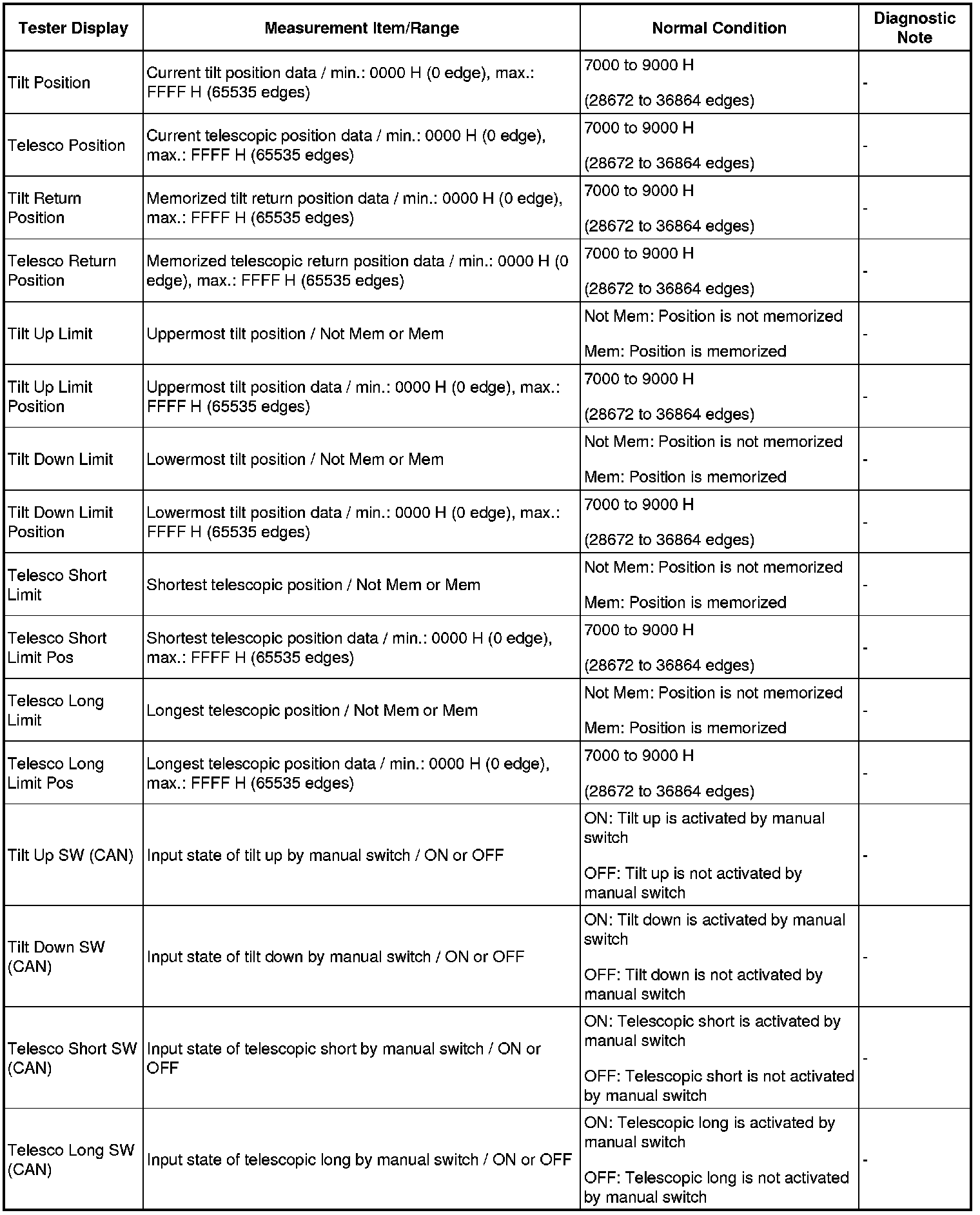 STEERING COLUMN: POWER TILT AND POWER TELESCOPIC STEERING COLUMN SYSTEM: FREEZE FRAME DATA