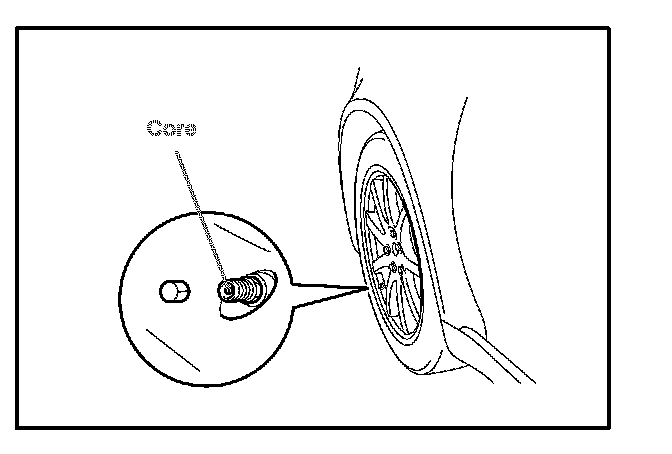 3. Press or remove the valve core to reduce the tire inflation pressure rapidly by 6 psi (0.4 kgf/sq.cm, 40 kpa), or more, within 30 seconds.