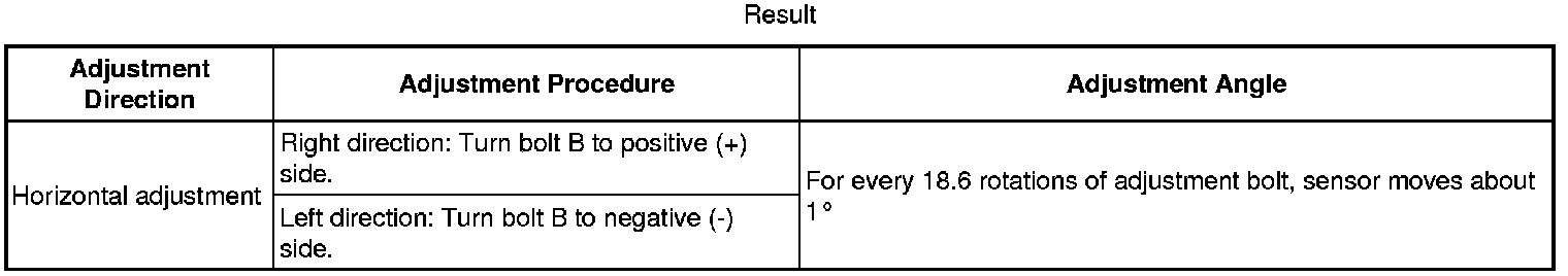 - If "LEFT SIDE: 1.0°" is displayed, the divergence is 1.0° in the left direction. Turn bolt B approximately 18.6 turns to the negative (-) side.
