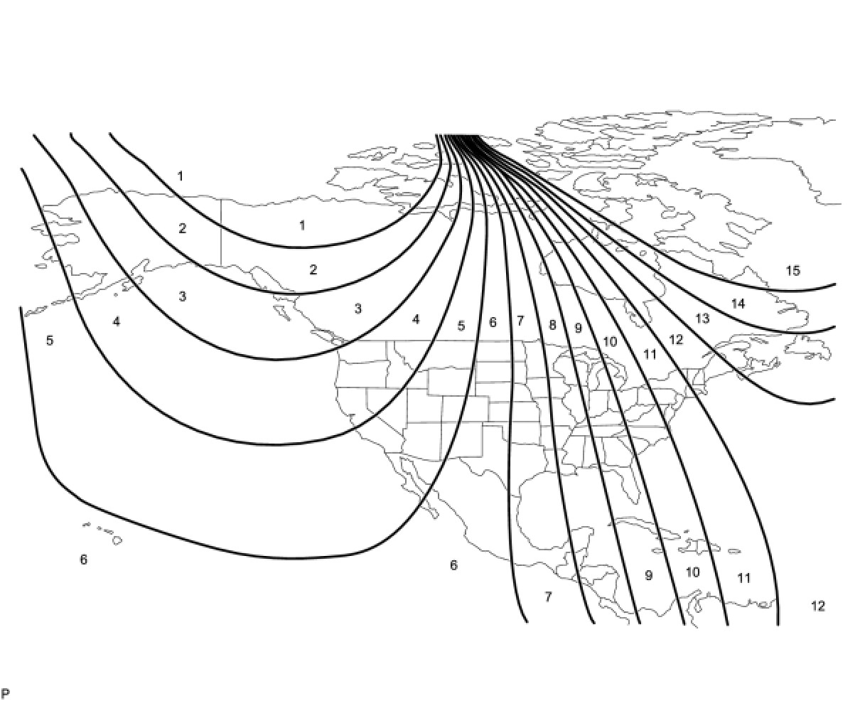 (a) The location of magnetic north and true north differs depending on the vehicle's location. Adjustment of the compass's magnetism is required. The user must select a zone as the automatic adjustment will be different depending on the vehicle's location.