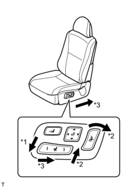 (2) Press the power seat switch front vertical switch downward 3 times.*1