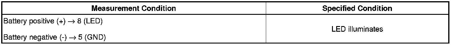 (c) Apply battery voltage to the power window regulator switch and check that the LED illuminates.