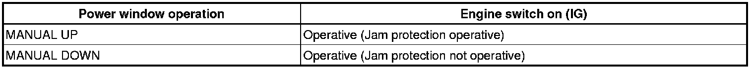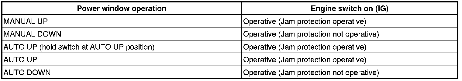 (a) The power window control system prohibits the following power window operation when the pulse sensor for the jam protection function has problems and the window position or the learned value is abnormal.