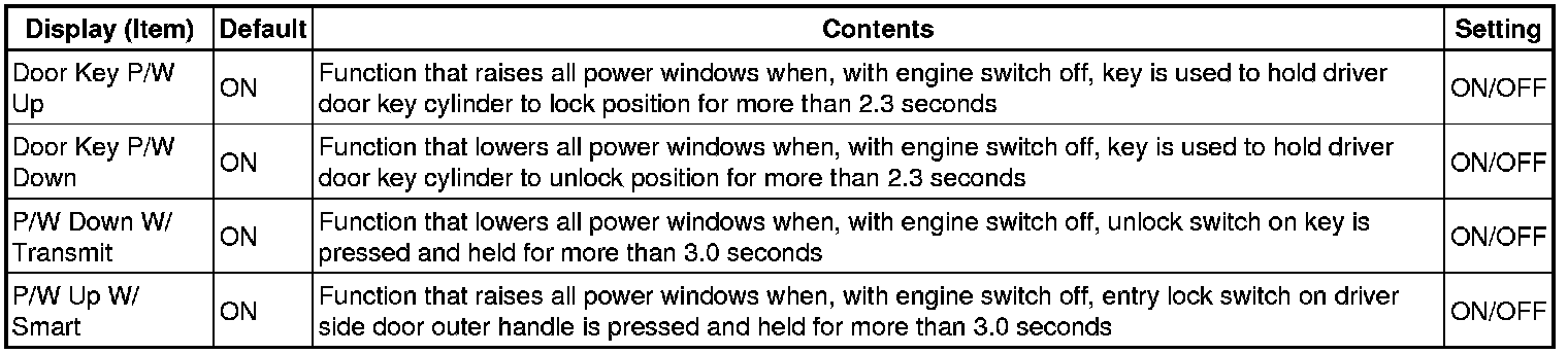 WINDSHIELD / WINDOWGLASS: POWER WINDOW CONTROL SYSTEM: CUSTOMIZE PARAMETERS