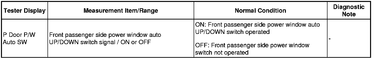 Front Passenger Side Power Window Auto Up / Down Function does not Operate with Front Passenger Side Power Window Switch