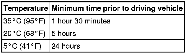 NOTE: Do not drive the vehicle within the time written in the table below.