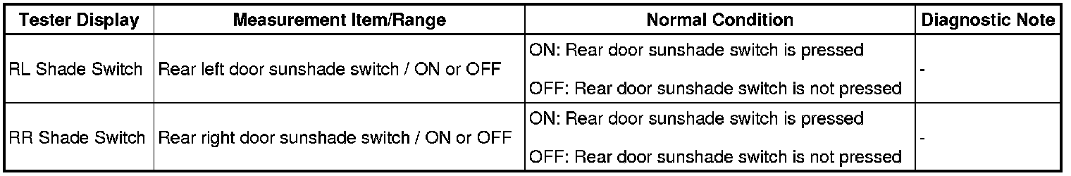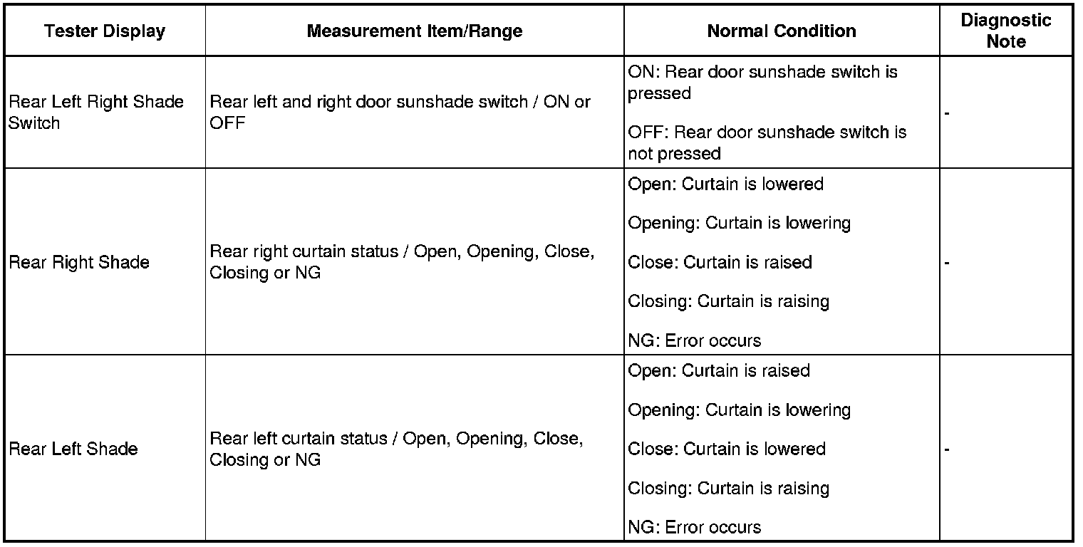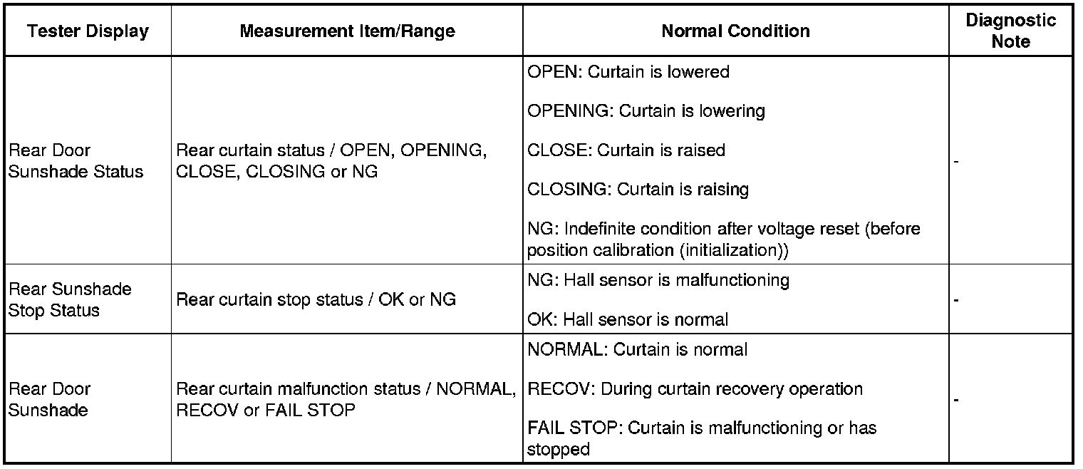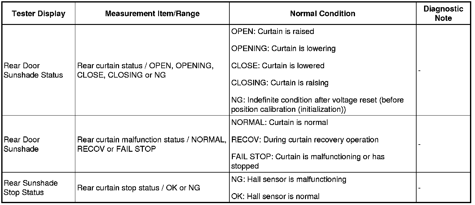 INTERIOR: REAR DOOR SUNSHADE SYSTEM: DATA LIST / ACTIVE TEST