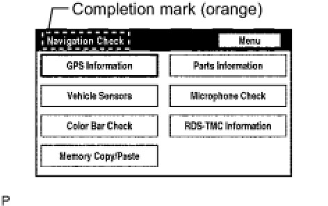 (3) The screen enters "Navigation Check" with a beeping sound. Adjustment is completed when the completion mark is displayed.