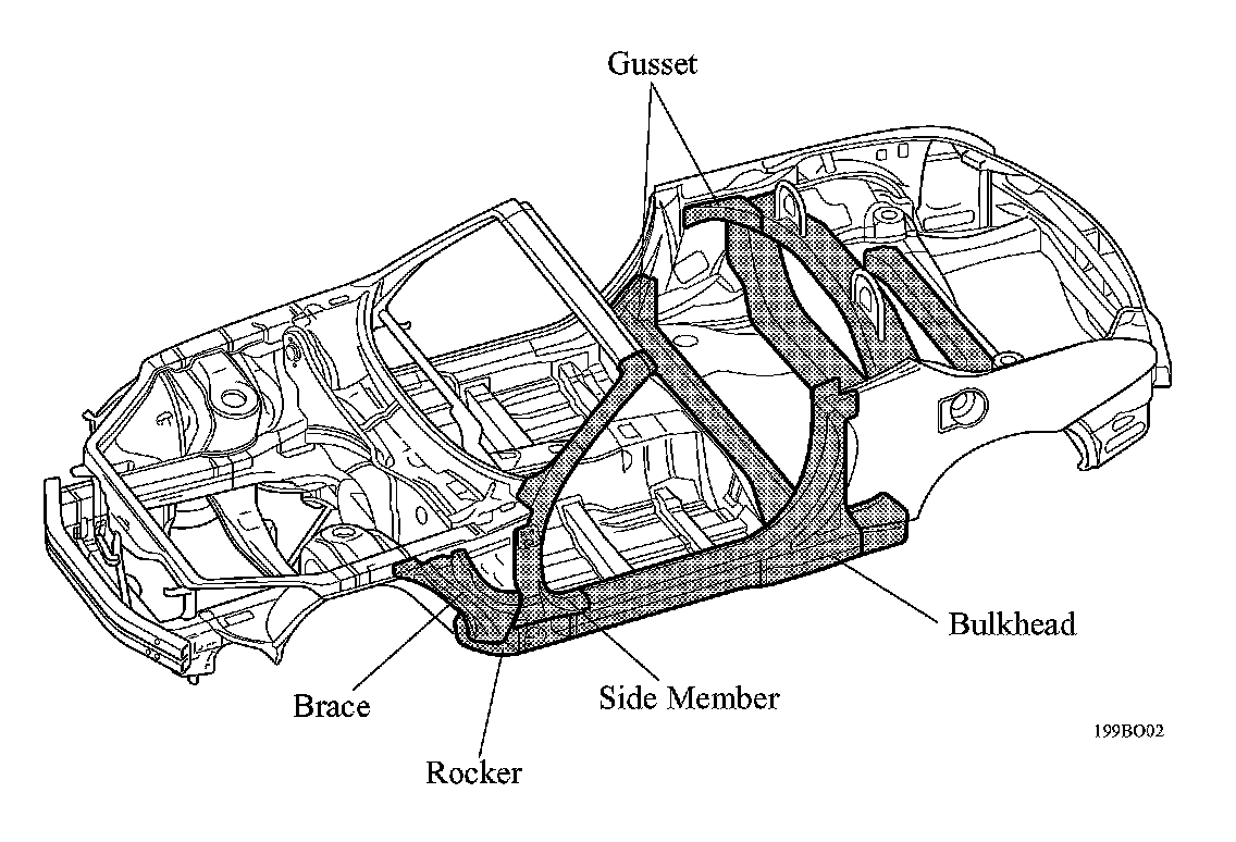 ^ Bulkhead is arranged effectively at the connection portion of the front and quarter pillar and the rocker, thus ensured the high bond rigidity.