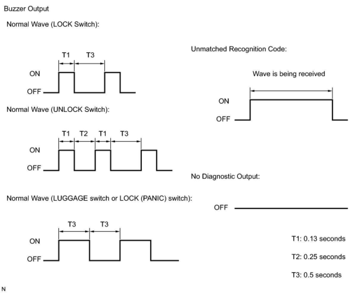 (c) Inspect the diagnosis outputs when the door control transmitter switch is held down (the diagnosis outputs can be checked with the sound of the wireless door lock buzzer).