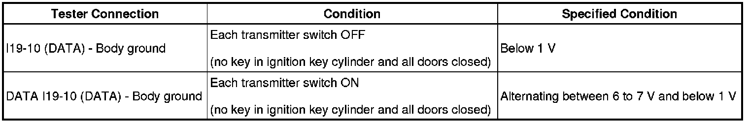 (a) Prepare a new or functioning door control transmitter from the same vehicle model. Press and hold a switch on the transmitter and check that an unmatching recognition code is output.