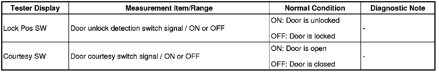 DOOR LOCK: POWER DOOR LOCK CONTROL SYSTEM: DATA LIST / ACTIVE TEST