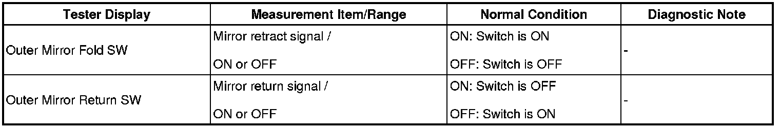 1. READ VALUE OF TECHSTREAM (MIRROR RETRACT SWITCH)