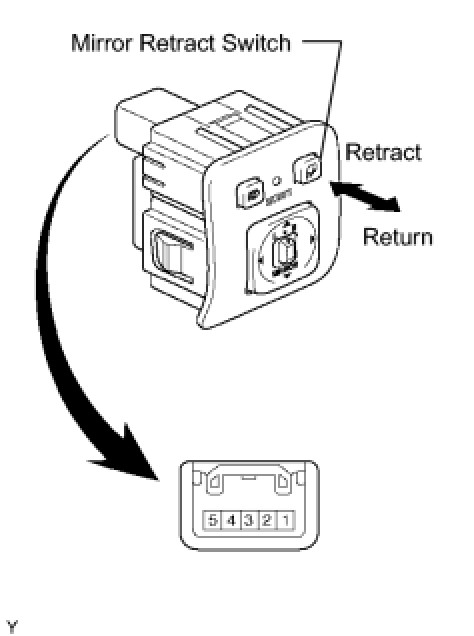 2. INSPECT OUTER MIRROR SWITCH ASSEMBLY (MIRROR RETRACT SWITCH)