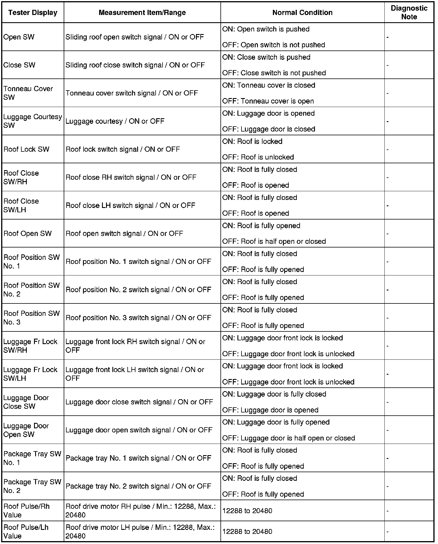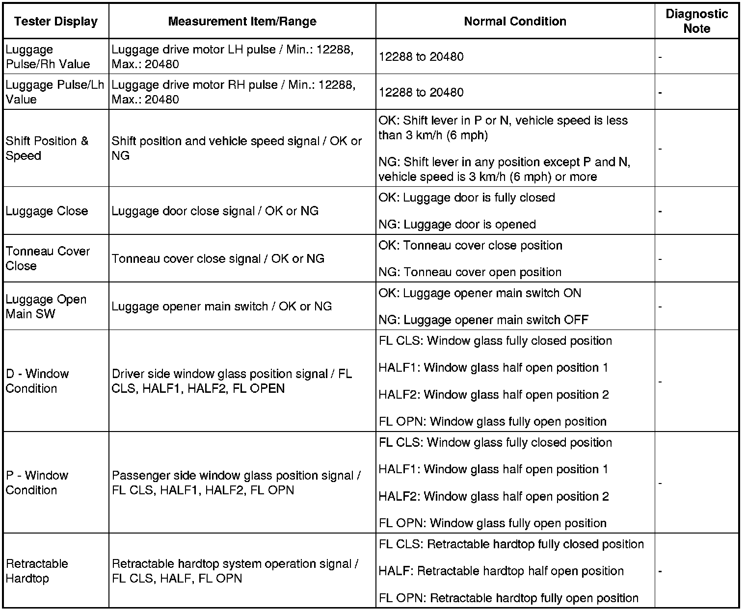 CONVERTIBLE: RETRACTABLE HARDTOP SYSTEM: DATA LIST / ACTIVE TEST