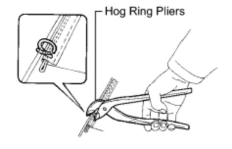 (b) Using hog ring pliers, install the seat cushion cover (with pad) to the seat cushion spring with new hog rings.