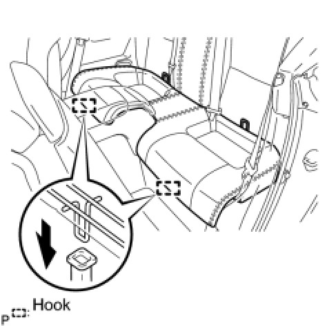 (b) Attach the seat cushion's 2 front hooks to the vehicle body.