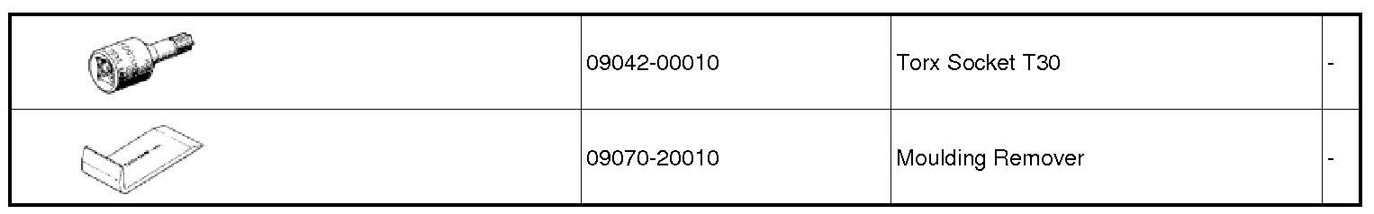 PREPARATION: INSTRUMENT PANEL: RECOMMENDED TOOLS