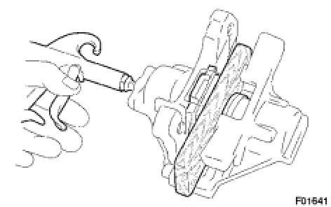 NOTE: Be careful not to damage the brake piston and cylinder.