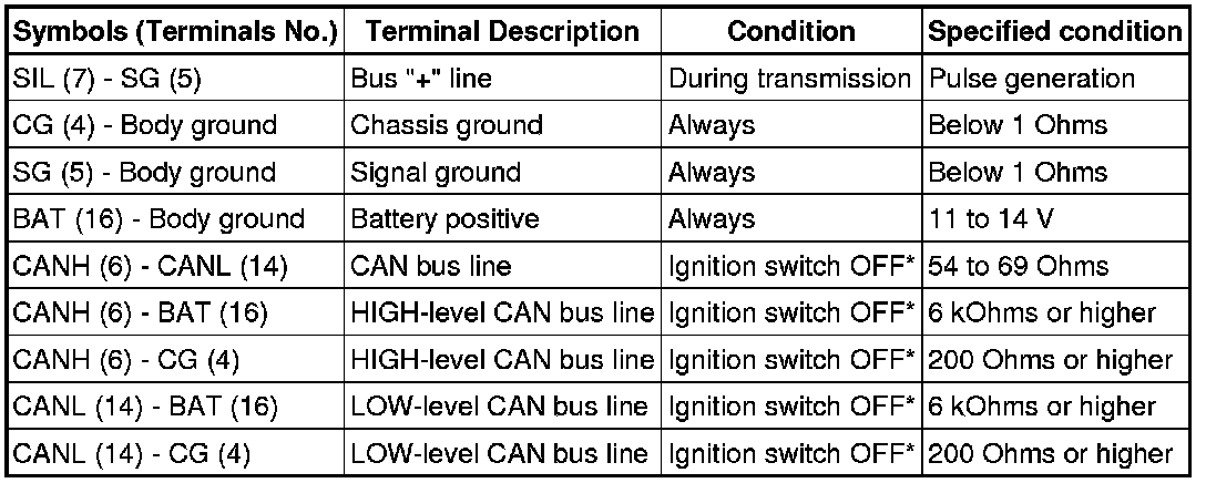 NOTE: *: Before measuring the resistance, leave the vehicle as is at least 1 minute and do not operate the ignition switch, any other switches or the doors.