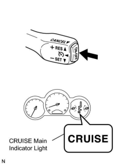 If the results are not as specified, inspect the CRUISE main indicator light circuit [1][2]Component Tests and General Diagnostics.